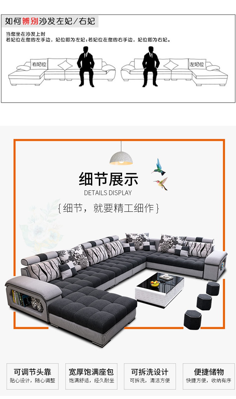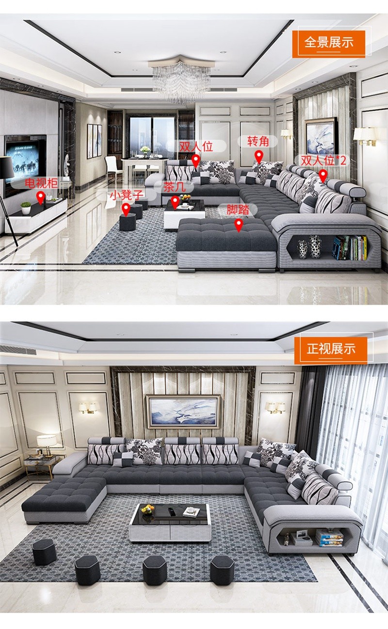 布艺沙发简约现代大小户型客厅转角北欧布沙发可拆洗组合整装家具